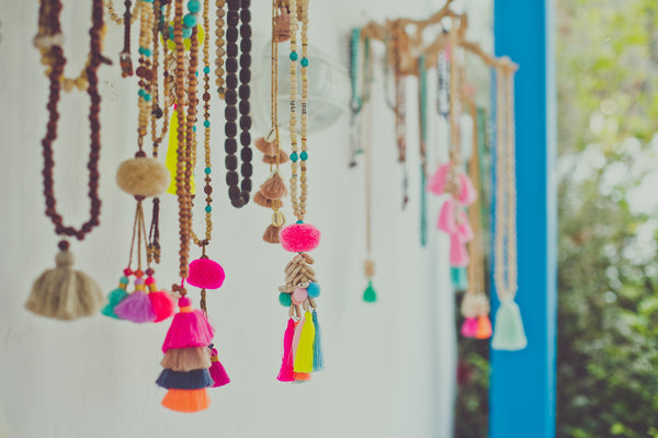 No outfit is complete without the right accessories. We have a large selection of bright colourful hand made necklaces and tassels to complete your look.